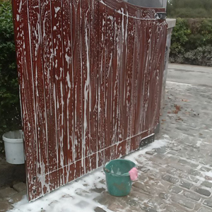 Before painting, the gates were thoroughly washed to remove dirt, dust, and old paint.