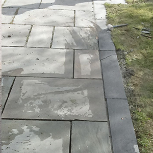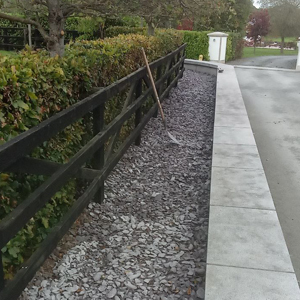 A stone carpet was installed at the request of the client, who was tired of mowing